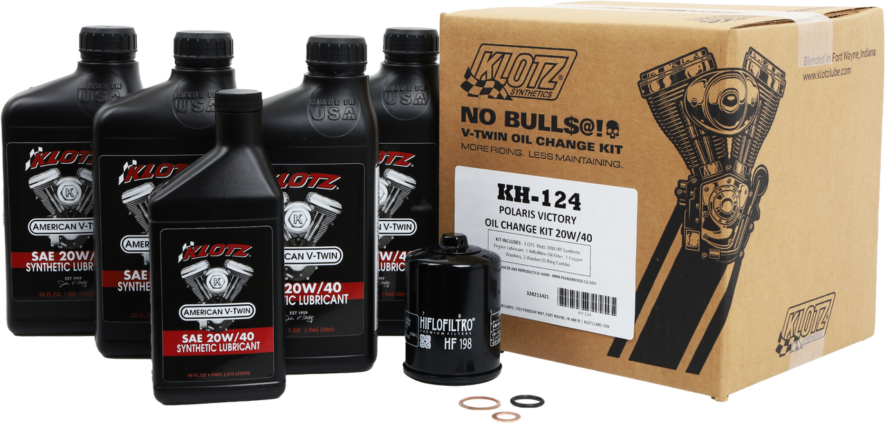 Click the button below to add the Klotz 4.5Qt Synthetic Oil Change Kit Victory KH-124 to your wish list.
