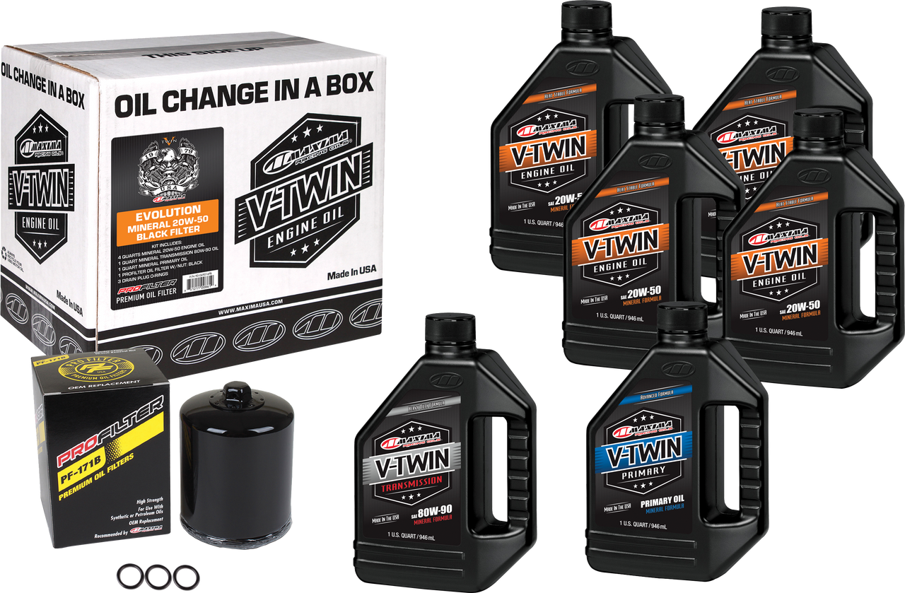 Click the button below to add the Maxima V-Twin Oil Change Kit Mineral Evo Black Filer 90-069016PB to your wish list.