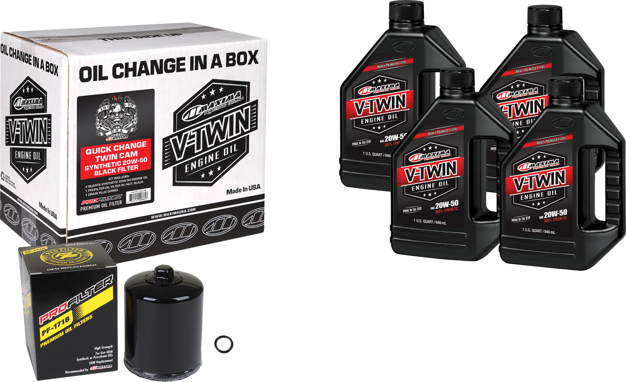 • Maxima V-Twin Synthetic Oil Change Kit Twin Cam Black Filer 90-119016PB