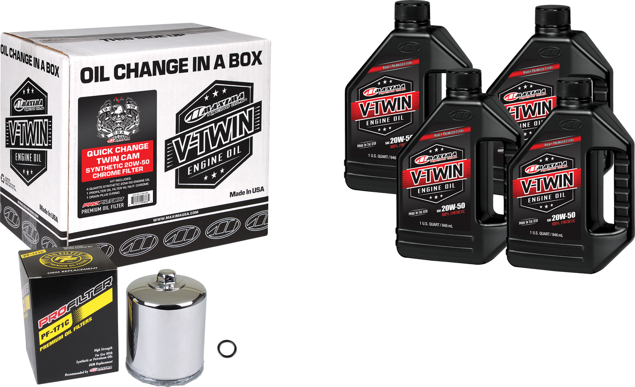 • Maxima V-Twin Synthetic Oil Change Kit Twin Cam Chrome Filer 90-119016PC